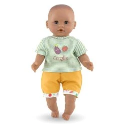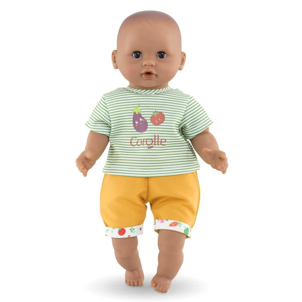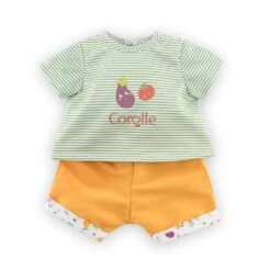 Le T-Shirt & Bermuda La FĂȘte du Potager est l’ensemble dans l’air du temps pour les petits poupons de 30 cm mon premier poupon Corolle. ConfectionnĂ© dans des matiĂšres douces et rĂ©sistantes, il est facile Ă enfiler grĂące aux bandes auto-agrippantes, adaptĂ©es Ă la dextĂ©ritĂ© des petites mains.