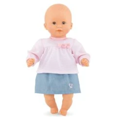 Le Top & Jupe est le vĂȘtement casual pour les petits poupons de 30 cm mon premier poupon Corolle. ConfectionnĂ© dans des matiĂšres douces et rĂ©sistantes, il est facile Ă enfiler grĂące aux bandes auto-agrippantes, adaptĂ©es Ă la dextĂ©ritĂ© des petites mains.