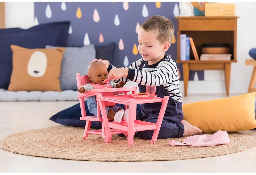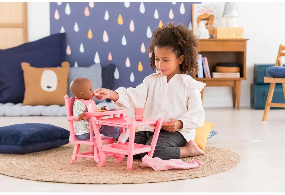 Ă table ! La Chaise Haute est adaptĂ©e aux grands poupons de 36 Ă 42 cm Corolle. Elle est 2 en 1 : elle se place en position haute comme celle dâun vrai bĂ©bĂ© ou en position basse pour faciliter le jeu assis. Sur sa petite tablette, on peut poser le repas de son grand poupon. Plus que jamais, les enfants vont adorer donner Ă manger Ă leur grand poupon !