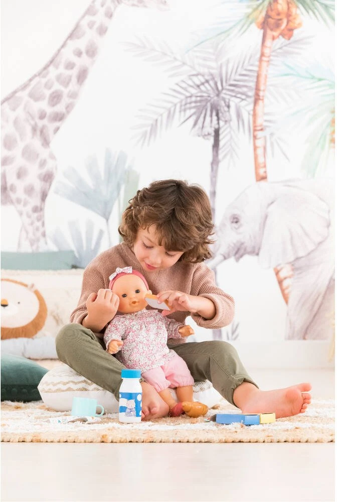 Miam; c’est l’heure du petit dĂ©jeuner ! Le Coffret Petit DĂ©jeuner contient tous les accessoires indispensables pour le premier repas de la journĂ©e des grands poupons : une tasse; une bouteille de lait (avec bouchon amovible); une cuillĂšre avec de la confiture; un pot de confiture; un croissant (qu’on peut couper en deux); une tartine; une boĂźte de cĂ©rĂ©ales; une boĂźte de chocolat en poudre et une serviette en tissu.