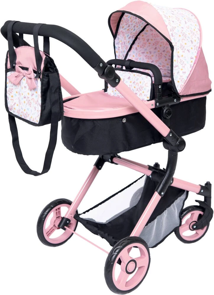 Ce landau combi est un landau multifonction au design moderne. ChĂąssis rĂ©sistant. Pour poupĂ©e jusqu’Ă 52 cm (non fournie). GrĂące Ă sa poignĂ©e ajustable en hauteur de 68 jusqu’Ă 86 cm, il est facilement adaptable Ă la taille de l’enfant. La nacelle ou porte-bĂ©bĂ© se dĂ©tache facilement et permet ainsi Ă l’enfant d’avoir sa poupĂ©e face Ă lui ou face Ă la route. Le landau a une poignĂ©e rĂ©versible : elle peut ĂȘtre facilement dĂ©placĂ©e des deux cĂŽtĂ©s. Appuie sur les boutons pour convertir le landau en poussette. Canopy (capote de poussette) protĂ©geant la poupĂ©e du soleil ou du vent qu’elle soit couchĂ©e ou en position assise dans le landau. Capote ajustable et amovible. Facile Ă manĆuvrer, roues avant pivotantes. Pour le transport et un gain de place, le combi se plie facilement. EquipĂ© d’un panier Ă provisions. LivrĂ© avec un sac Ă langer qui sera utile Ă la petite « maman », dimensions 22 x 7.5 x 21 cm. Ce sac a une fermeture Ă©clair, il peut ĂȘtre portĂ© en bandouliĂšre ou comme un sac Ă mains. L’assemblage doit ĂȘtre effectuĂ© par un adulte. Instructions de montage incluses. Poids du landau : 4.75 kg. Dimensions de la nacelle : 60 x 26 x 14 cm. MatiĂšres du landau : acier, polyester 300D, EVA, PP et nylon. Le siĂšge auto coque (jcu 41055666, vendu sĂ©parĂ©ment) est compatible avec le landau de ville.