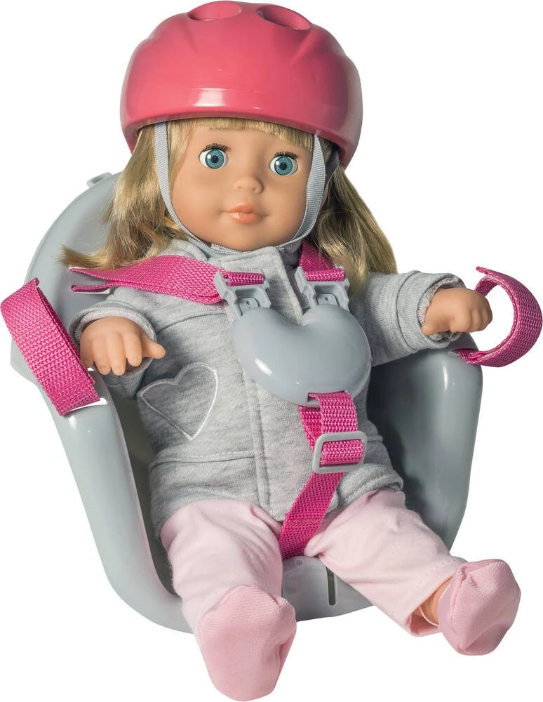 EmmÚne ta poupée se balader avec toi ! SiÚge vélo avec casque pour poupée de 45 cm. Poupée non fournie. Compatible avec les vélos et les trottinettes.