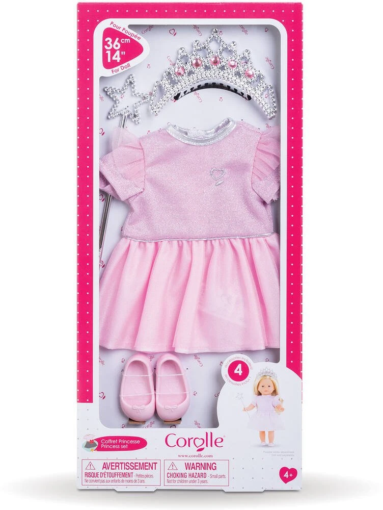 Coffret pour jouer Ă la princesse avec sa poupĂ©e ma Corolle. Contient 4 accessoires factices : 1 robe de princesse; 1 diadĂšme; 1 baguette magique et 1 paire de ballerines. ma Corolle : Ma poupĂ©e; Mes histoires ! tissus 100% polyester – tulle – 100% nylon – accs plastiques – Pour poupĂ©e ma Corolle 36 cm –