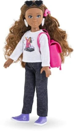 Le coffret Melody Shopping est composĂ© de Melody, une poupĂ©e mannequin de 28 cm, et de 6 accessoires. Melody a un joli visage naturel aux traits fins qui sent bon la vanille. Ses yeux sont peints et elle possĂšde de longs cheveux chĂątains lumineux et ondulĂ©s. Elle porte 1 pantalon noir, 1 T-Shirt manches longues imprimĂ©, 1 paire de bottines amovibles et 1 paire de boucles d’oreille amovibles. Comme toutes les jeunes adolescentes de son Ăąge, Melody adore faire du shopping. Elle vient de recevoir 1 colis, en l’ouvrant elle va dĂ©couvrir les 6 accessoires surprises qu’il renferme : 1 robe, 1 sac Ă main, 1 paire de lunettes de soleil et 3 pinces Ă cheveux. Melody a un corps rĂ©aliste de jeune adolescente. Elle tient assise et debout toute seule. Les Corolle Girls sont dĂ©clinĂ©es en plusieurs modĂšles et disposent de coffrets dressing pour encore plus de jeux ! PoupĂ©e: ABS & PVC – Accs en plastique – Tee shirt : Jersey 65% polyester 35% coton – Pantalon faux denim 100% polyester – Robe spun poly 100 % polyester –