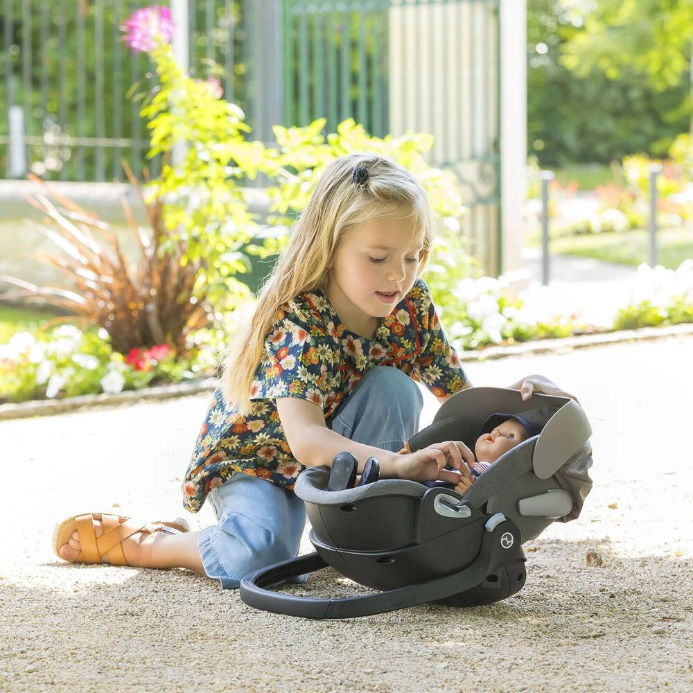 Le porte-poupon Corolle x Cybex 2-en-1 a tout dâun vrai ! Il sâutilise Ă la fois comme porte-bĂ©bĂ© et comme transat. Il est donc idĂ©al pour emmener son poupon en promenade ou lui donner son repas par exemple ! Porte-poupon. GrĂące aux anses de sĂ©curitĂ©; le poupon (36 ou 42 cm) Corolle est sĂ»rement et confortablement installĂ©. LĂ©ger et muni dâune poignĂ©e mobile de transport; il est parfaitement maniable pour partir en promenade ! La canopy rĂ©tractable permet de ne soucier ni du soleil ni de la pluie ! Lorsque votre enfant souhaite que son poupon se repose; il suffit de basculer la poignĂ©e de transport du porte-poupon vers l’avant. Le poupon est ainsi confortablement installĂ© en position inclinĂ©e. Corolle x Cybex 2-en-1 est compatible avec la structure du landau Priam 3-en-1 Corolle x Cybex pour encore plus de jeux ! Le poupon peut alors ĂȘtre installĂ© facilement dans un sens ou dans l’autre grĂące Ă sa poignĂ©e de transport.Les grands poupons disposent d’un collection variĂ©e de vĂȘtements et d’accessoires dans la gamme mon grand poupon Corolle pour jouer et faire comme les grands. PoignĂ©e de transport Ă fixer par un adulte avec 2 vis (fournies)-
