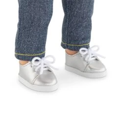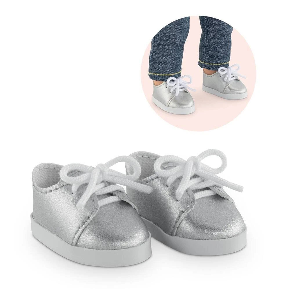 Paire de baskets argentées pour poupée ma Corolle 36 cm. Parfaite pour un look sport-chic ! (poupée non incluse).