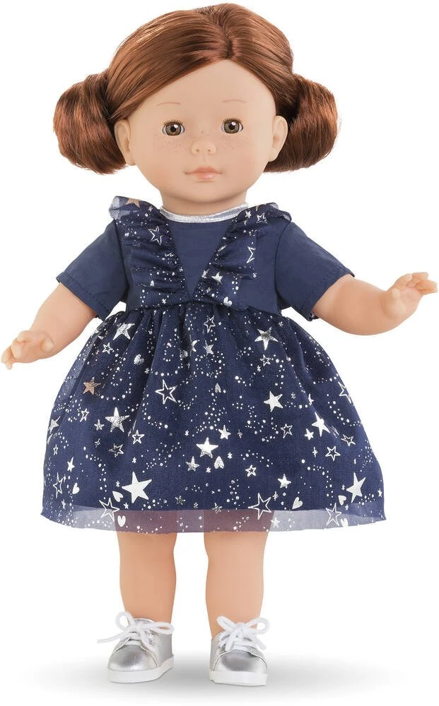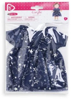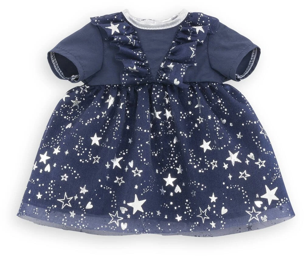 Avec cette robe Ă Ă©toiles argentĂ©es; c’est un look chic assurĂ© pour les soirĂ©es des poupĂ©es ma Corolle.