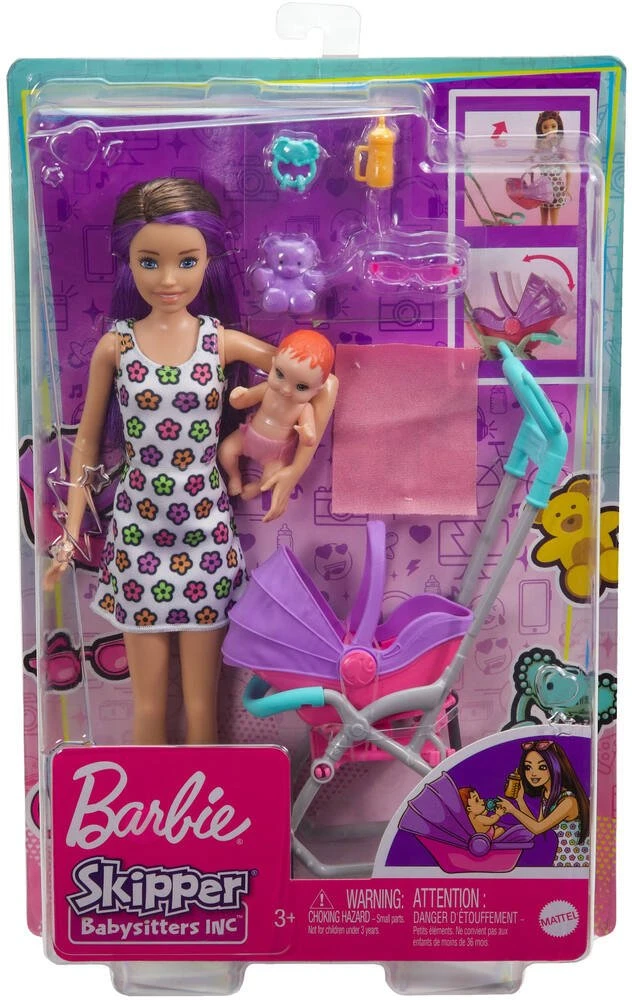 Le coffret inclut Skipper et un bébé, une poussette à rebonds et cinq accessoires sur le thÚme du maternage pour compléter le jeu avec les POUPEEs.