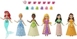Coffret de 6 poupĂ©es princesses Disney avec des vĂȘtements Ă©tincelants et 13 accessoires de inspirĂ©s des films de Disney. Chaque petite poupĂ©e brille dans son look signature Ă©tincelant. L’ensemble comprend une thĂ©iĂšre et 12 tasses et friandises pour complĂ©ter le plaisir du thĂ©.