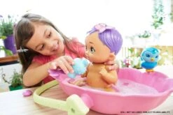 Ce coffret Nénuphar 2 en 1 se compose d’un couffin qui fait également baignoire. A l’heure du bain, remplissez la baignoire d’eau, lavez la poupée My Garden Baby 30 cm (vendue séparément) avec le savon pendant qu’elle joue avec son petit oiseau en plastique et ses jouets de bain qui changent de couleur. Séchez-la ensuite avec la serviette. Au coucher, videz la baignoire, relevez l’anse et suspendez les jouets. Bordez le poupon (non inclus) dans son couffin avec oreiller et couverture. Dès 2 ans