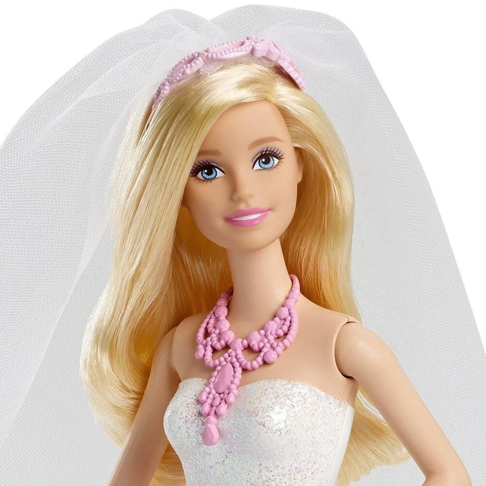 D’un chĂąteau Ă un royaume enchantĂ© en passant par une cĂ©rĂ©monie intime dans une clairiĂšre, un mariage est toujours un Ă©vĂ©nement merveilleux ! Tu vas pouvoir imaginer une fin heureuse pour cette ravissante poupĂ©e Barbie MariĂ©e. HabillĂ©e pour ce jour spĂ©cial, elle est prĂȘte Ă Ă©crire sa fabuleuse histoire, Ă sa façon. ComposĂ©e d’un bustier et d’une jupe longe, la silhouette de sa robe de mariĂ©e est classique. Les touches de couleur et le filigrane brillant en font une mariĂ©e moderne et sublime ! Avec son magnifique collier et son voile avec serre-tĂȘte intĂ©grĂ©, fais marcher cette ravissante mariĂ©e jusqu’Ă l’autel et imagine la plus romantique des histoires. AprĂšs l’Ă©change des voeux, lance son joli bouquet qui peut tenir dans sa main vers ses meilleures amies. Puis admire la superbe bague et laisse-la s’envoler vers sa lune de miel. Tu vas adorer recrĂ©er des mariages de rĂȘve et imaginer des aventures romantiques. Le set comprend une poupĂ©e Barbie MariĂ©e et ses accessoires comprenant un voile fixĂ© Ă un serre-tĂȘte, un collier, des chaussures et un bouquet. La poupĂ©e ne peut pas tenir debout toute seule.