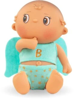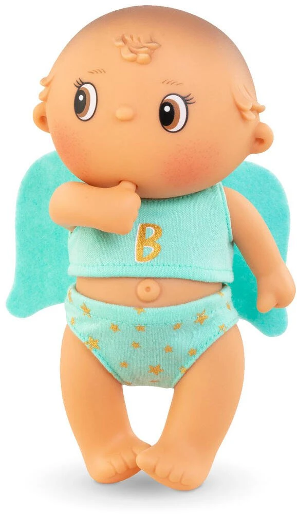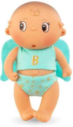 Mini poupon polisson de 20 cm. Les Beedibies ont un corps vinyle et des yeux peints. Comment ne pas ĂȘtre sĂ©duit par leur regard en coin ? Ils sucent leur pouce. Leur petit nombril proĂ©minet est trĂšs rigolo ! Beedibies Gaspard est habillĂ© tel un ange; avec de belles ailes vertes (non amovibles) dans le dos. Il arbore fiĂšrement un B dorĂ© sur le devant de son t-shirt vert et porte une culotte assortie verte avec des Ă©toiles dorĂ©es. Tous les Beedibies ont une dĂ©licate senteur de vanille. 3 modĂšles Ă collectionner. DĂšs 3 ans.