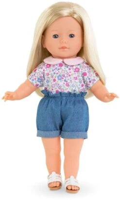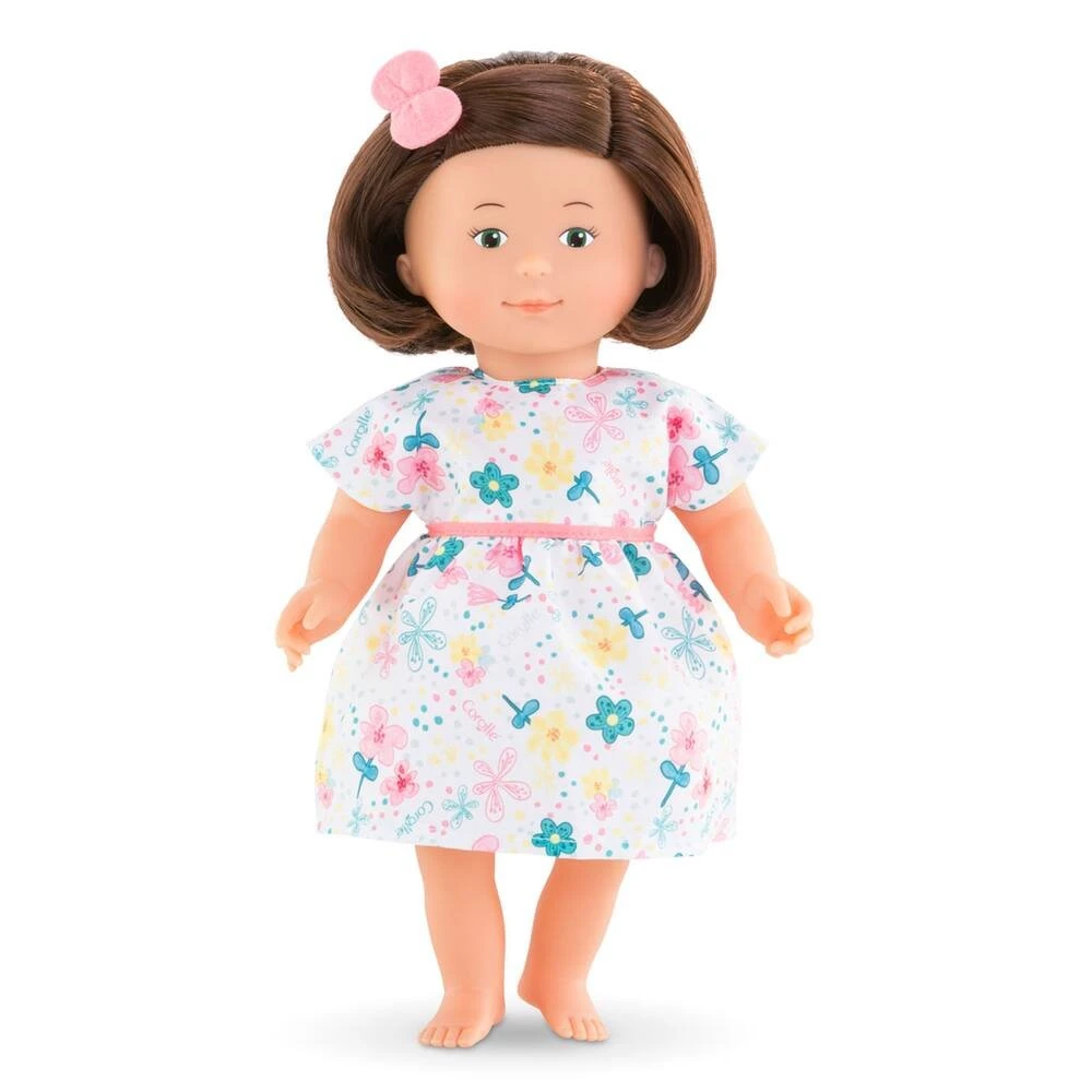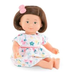 Florolle Ăglantine est une petite poupĂ©e de 32 cm; la taille parfaitement adaptĂ©e aux petits bras et mains de lâenfant pour la manipuler. Elle a des cheveux soyeux avec une coupe au carrĂ©; des yeux peints malicieux et un sourire joyeux ! Son visage; ses bras et ses jambes; Ă la dĂ©licate senteur de vanille; sont en vinyle doux au toucher. Elle est habillĂ©e dâune robe Ă fleurs et coiffĂ©e avec un chouchou.