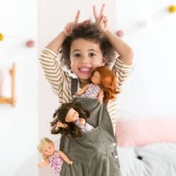 Mini Corolline Romy est une petite poupĂ©e de 20 cm « prĂȘte Ă offrir ». Elle a un corps tout en vinyle doux au toucher et Ă la dĂ©licate senteur de vanille. Ses yeux marron sont peints sur son visage. Elle a des cheveux longs bruns et soyeux pour faciliter le coiffage. Elle est habillĂ©e dâune robe fleurie « trois trous »; dâune culotte et dâune paire de chaussures moulĂ©es assorties. Mini Corolline Romy est le cadeau idĂ©al pour un goĂ»ter d’anniversaire; une surprise; … Cette petite poupĂ©e nomade se glisse facilement dans un sac ou dans un cartable pour accompagner votre enfant tout au long de la journĂ©e.