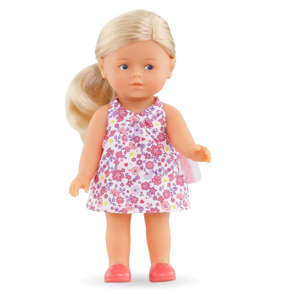 Mini Corolline Rosy est une petite poupĂ©e de 20cm « prĂȘte Ă offrir ». Elle a un corps tout en vinyle doux au toucher et Ă la dĂ©licate senteur de vanille. Ses yeux bleus sont peints sur son visage. Elle a des cheveux longs blonds et soyeux pour faciliter le coiffage. Elle est habillĂ©e dâune robe fleurie « trois trous »; dâune culotte et dâune paire de chaussures moulĂ©es assorties. Mini Corolline Rosy est le cadeau idĂ©al pour un goĂ»ter d’anniversaire; une surprise; … Cette petite poupĂ©e nomade se glisse facilement dans un sac ou dans un cartable pour accompagner votre enfant tout au long de la journĂ©e.