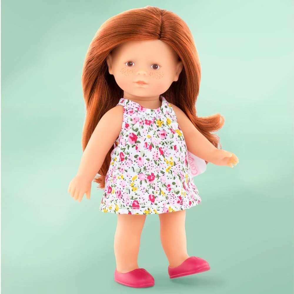 Mini Corolline Ruby est une petite poupĂ©e de 20cm « prĂȘte Ă offrir ». Elle a un corps tout en vinyle doux au toucher et Ă la dĂ©licate senteur de vanille. Ses yeux noisette sont peints sur son visage constellĂ© de tĂąches de rousseur. Elle a des cheveux longs roux et soyeux pour faciliter le coiffage. Elle est habillĂ©e dâune robe fleurie « trois trous »; dâune culotte et dâune paire de chaussures moulĂ©es assorties. Mini Corolline Ruby est le cadeau idĂ©al pour un goĂ»ter d’anniversaire; une surprise; …Cette petite poupĂ©e nomade se glisse facilement dans un sac ou dans un cartable pour accompagner votre enfant tout au long de la journĂ©e.