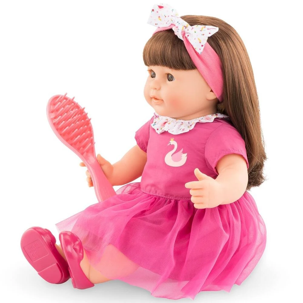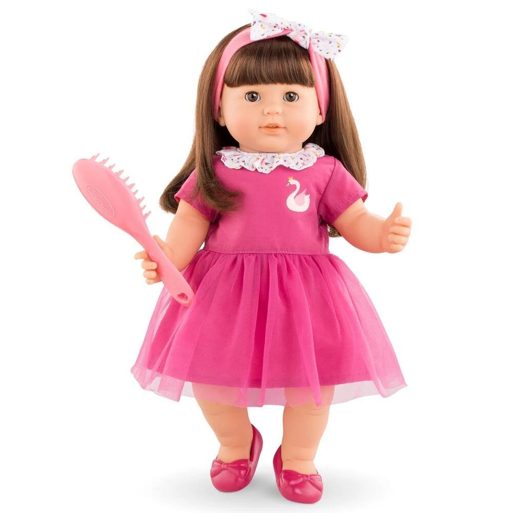 Alice est un grand poupon Corolle pour jouer et faire comme les grands. Avec les longs cheveux faciles Ă coiffer et la brosse de son poupon; l’enfant imagine et rĂ©alise ses toutes premiĂšres coiffures !Alice mesure 36 cm; une taille parfaitement adaptĂ©e aux petits bras de l’enfant pour la cĂąliner; la materner et reproduire les gestes qui font devenir grand. Son visage; ses bras et ses jambes; Ă la dĂ©licate senteur de vanille; sont en vinyle doux au toucher. Son corps est souple pour faciliter ses mouvements et elle tient assise. Avec ses yeux dormeurs; elle fait dodo quand on la couche sur le dos. Elle est dispose d’une collection complĂšte de vĂȘtements et dâaccessoires mon grand poupon Corolle pour imiter les gestes du quotidien et sâinventer des scĂ©narios de jeu multiples et variĂ©s. Alice ne peut pas prendre de tĂ©tine dans sa bouche.