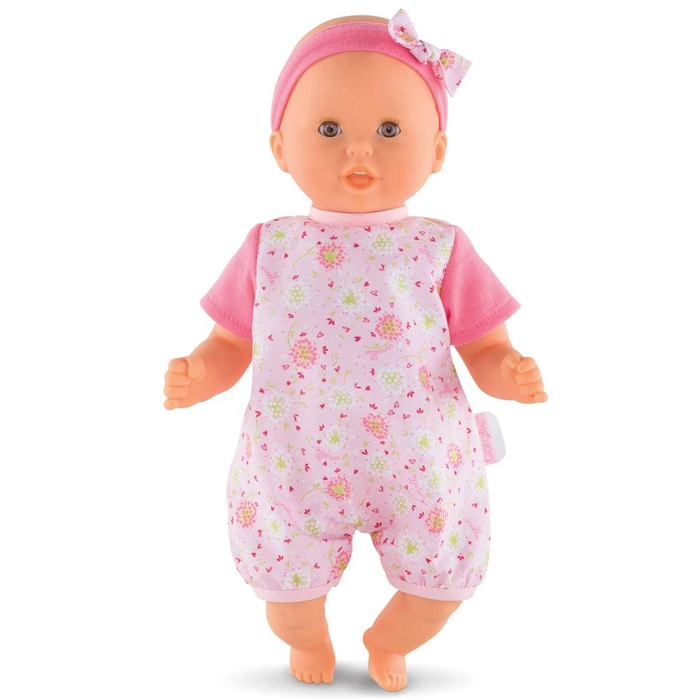 BĂ©bĂ© Calin Bisou & MĂ©lodies est le petit poupon interactif avec 7 fonctions simples. Il dit « mama », « papa », fait le bruit du bisou, rit et fredonne 3 mĂ©lodies. En appuyant sur son ventre, une fonction se dĂ©clenche, l’invitant tour Ă tour Ă rĂȘver, Ă danser et faire danser son petit poupon, ou tout simplement Ă Ă©couter et se sentir rĂ©confortĂ©. Il mesure 30 cm, la taille parfaitement adaptĂ©e aux petits bras et mains de l’enfant pour le manipuler. Son corps souple lui permet de prendre les mĂȘmes positions qu’un vrai bĂ©bĂ©. Son visage, ses bras et ses jambes, Ă la dĂ©licate senteur de vanille, sont en vinyle doux au toucher. Avec ses yeux dormeurs, il fait dodo quand on le couche sur le dos. Il est habillĂ© d’un ensemble tout-en-un et coiffĂ© d’un bandeau. Boitier amovible – Lavable Ă la main.
