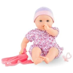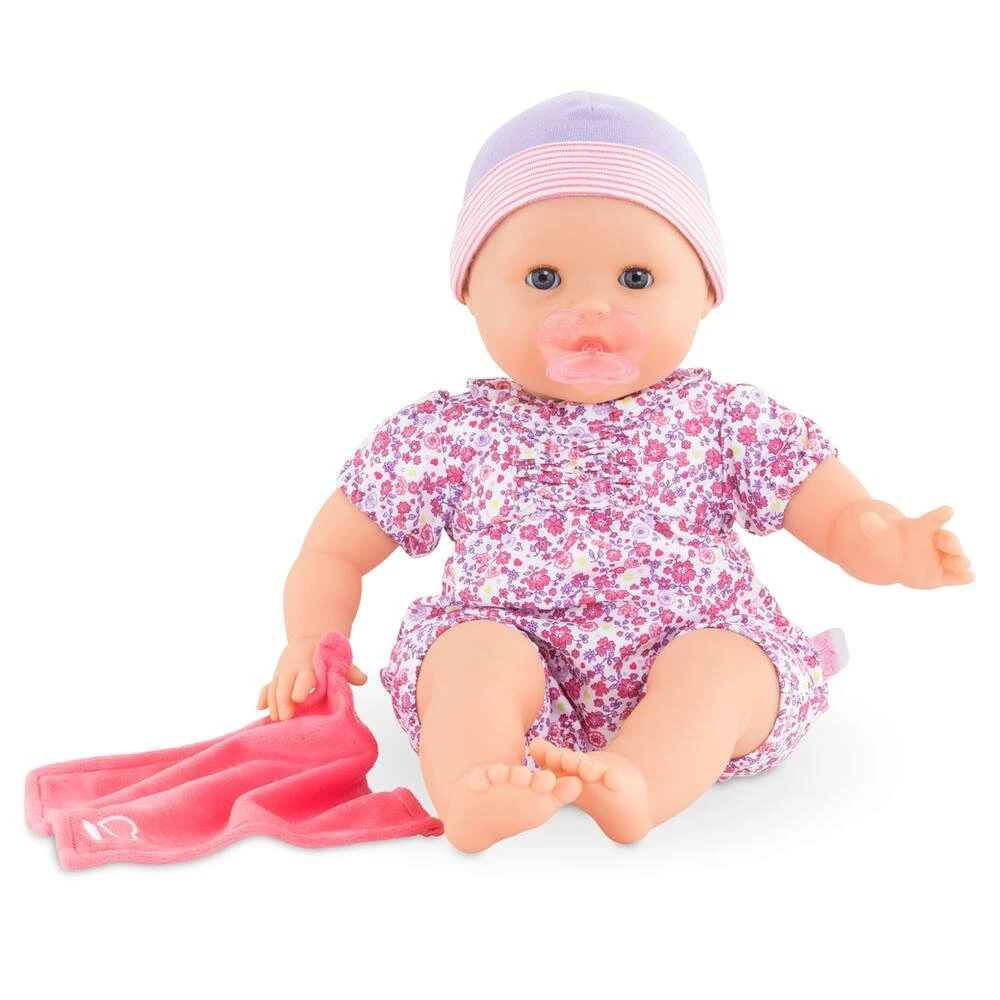 Ămilie Suce son Pouce est un coffret avec un grand poupon pour jouer et faire comme les grands. Avec ses deux accessoires; l’enfant apprĂ©hende et rejoue les rituels du coucher. En mettant son poupon au dodo; l’enfant lui donne son doudou-lange et sa tĂ©tine en s’initiant ainsi aux Ă©tapes qui le conduisent; en les reproduisant; vers le doux pays des rĂȘves… Ămilie mesure 36 cm; une taille parfaitement adaptĂ©e aux petits bras de l’enfant pour la cĂąliner; la materner et imiter les gestes qui font devenir grand.Son visage; ses bras et ses jambes; Ă la dĂ©licate senteur de vanille; sont en vinyle doux au toucher. Son corps est souple pour faciliter ses mouvements. Son pouce peut se maintenir dans bouche comme si elle suçait son pouce ! Avec ses yeux dormeurs; elle fait dodo quand on la couche sur le dos. Elle est habillĂ©e d’un pyjama fleuri ainsi que d’un bonnet assorti. Ămilie dispose d’une collection complĂšte de vĂȘtements et d’accessoires mon grand poupon Corolle pour imiter les gestes du quotidien et s’inventer des scĂ©narios de jeu multiples et variĂ©s. Elle ne peut pas porter de chaussures.