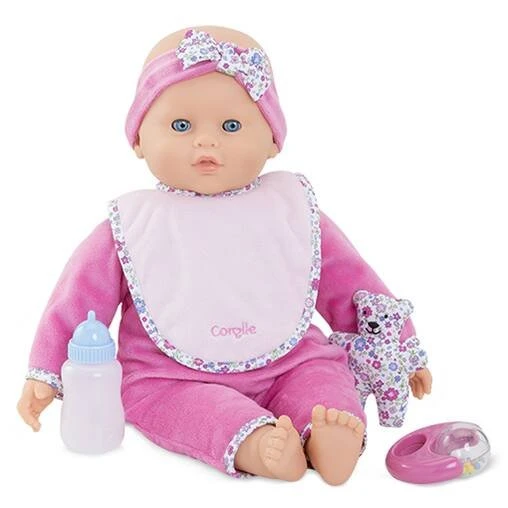 Le Poupon Lucille de Corolle est une poupée de 42 cm réaliste et soignée, idéal pour imiter le quotidien et inventer de multiples scénarios.